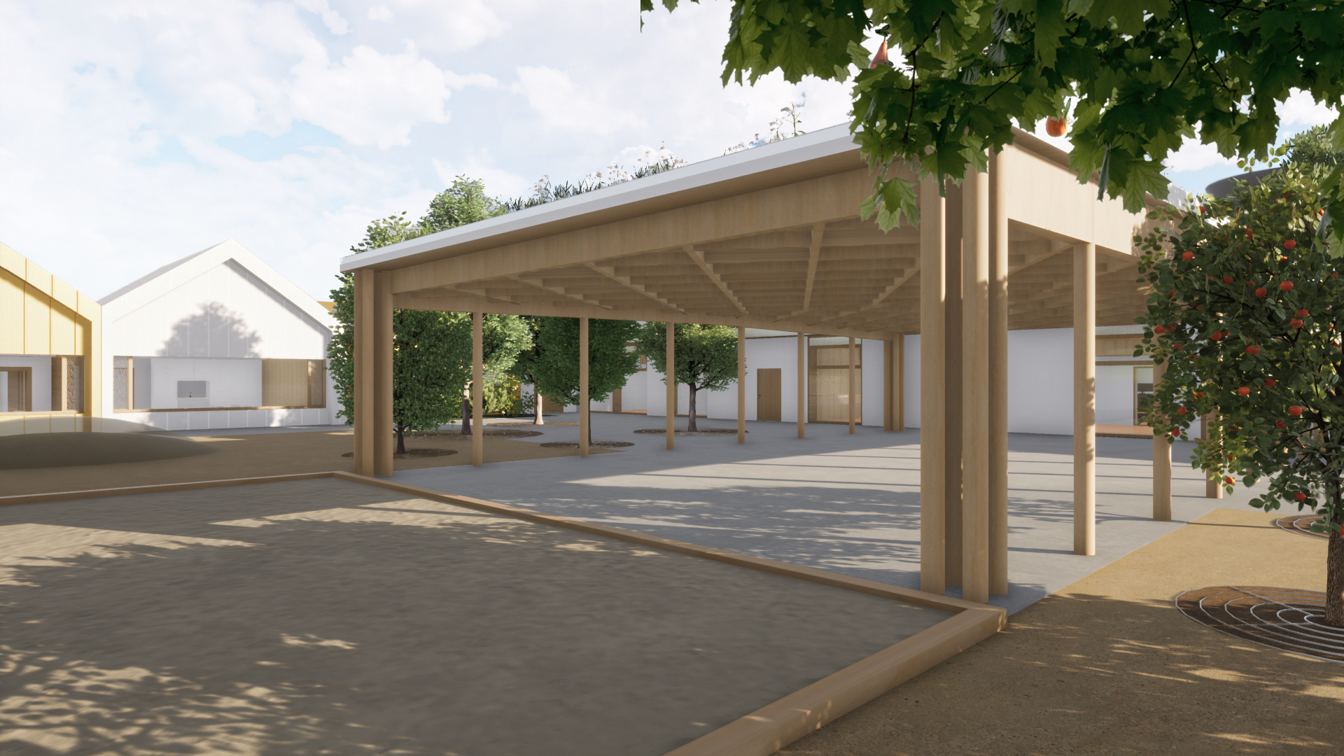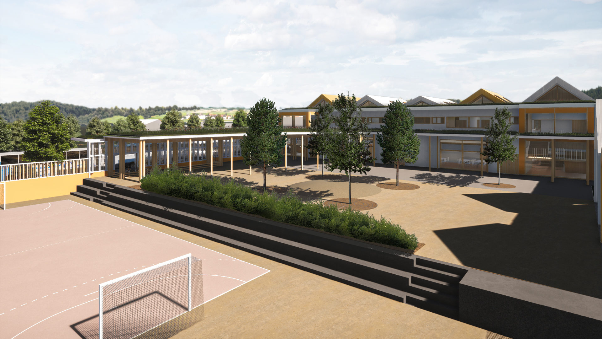 Le projet consiste en la création de 16 classes (10 Elémentaires / 6 Maternelles) et d’un Périscolaire comprenant 4 salles d’activité. Il doit répondre à la gestion de différents flux (piétons / bus / véhicules légers) tout en intégrant la problématique du collège, situé face au nouveau groupe scolaire, et pourtant hors projet. Préaux et galeries couvertes répondent en partie à cette problématique.